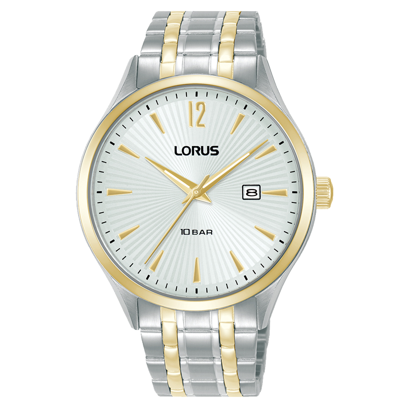 This men’s timepiece is designed for clear-cut timeless elegance. Featuring a silvery-white sunray dial with a pressed pattern finish, it has a sophisticated and refined look. The semi-luminous hands ensure readability in various light conditions, while the date window adds a practical touch for everyday convenience. With water resistance up to 100 metres, this watch combines style and functionality, making it an ideal accessory for both everyday wear and special occasions.