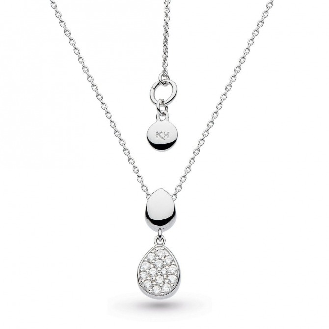 The beautiful tactile double linked pebble on this rhodium plated necklace is beautifully pavé set with cubic zirconia for a party-ready look.