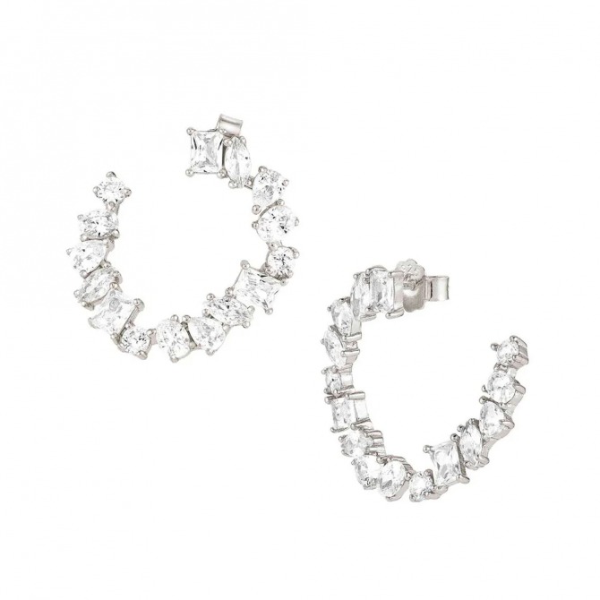 Silver hoop earrings with coloured Cubic Zirconia that are available with two finishes applied via a galvanic process. Choose from rose gold finish or white rhodium treated finish on this accessory to light up every day with style and refinement.