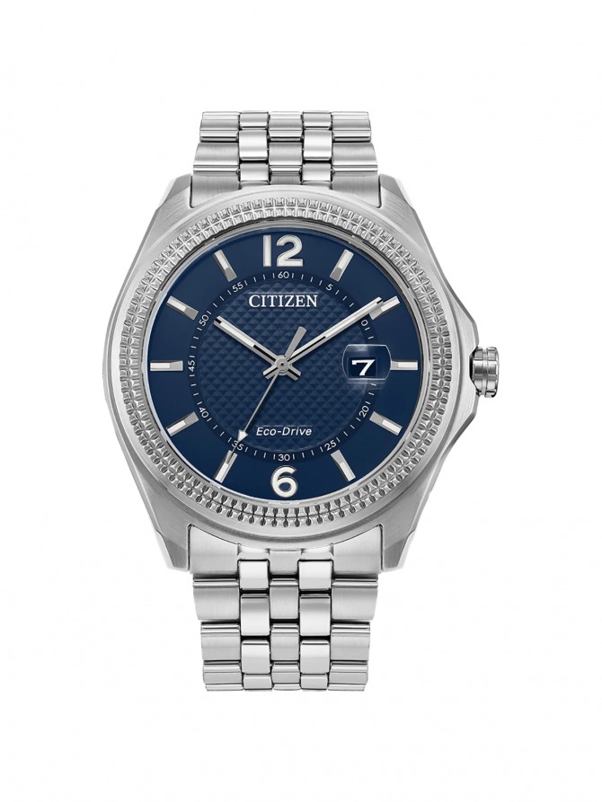 A classic timepiece is always in style in the latest addition to the Corso Classic collection. This must-have men’s watch is accentuated by a silver-tone stainless steel case and distinct coin edge bezel that holds a blue three-hand dial with date. The sleek stainless-steel bracelet band fastens with a fold over clasp with hidden push buttons. This Eco-Drive watch is sustainably powered by any light source, eliminating the need for a battery, and is water resistant up to 100 meters. The classic Corso timepiece by Citizen, where classic elegance and modern technology.