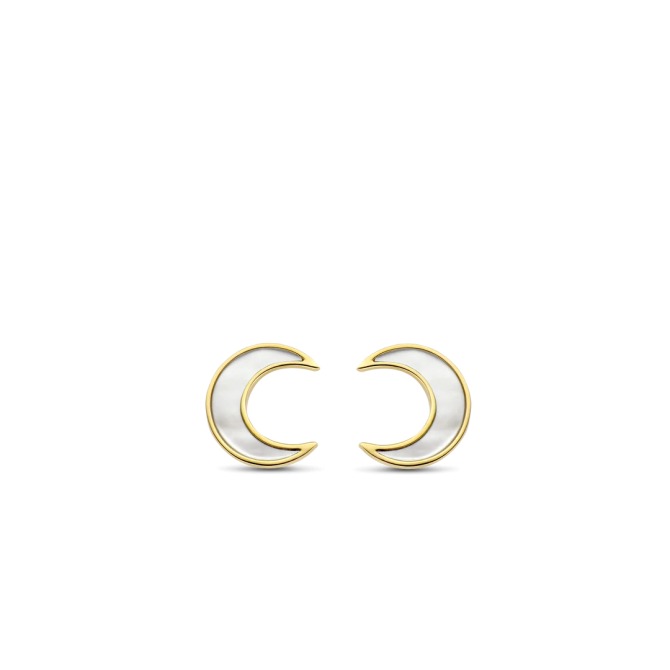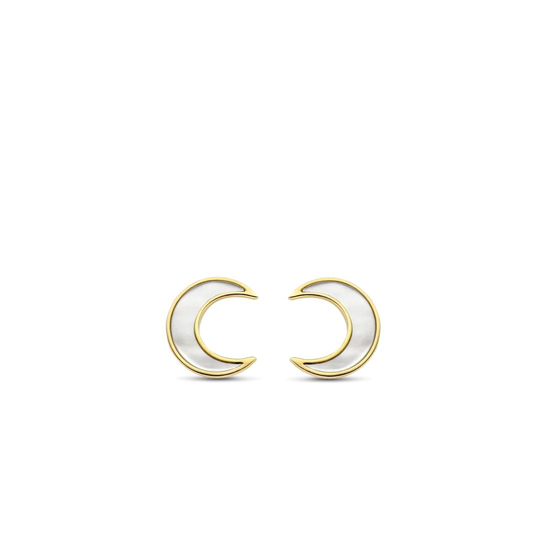 These TI SENTO gold-plated moon studs 7935MW flaunt dreamy mother of pearl handset in yellow gold-plated settings. These studs are entirely crafted from premium 925 sterling silver and plated with yellow gold for an opulent and warm touch. They invite us to explore the depth of our emotions and reconnect to our inner wisdom. Let them be a reminder of the powerful feminine energy that resides within you. The iridescent lustre of mother of pearl is softly enhanced by luxurious yellow gold plating. Mingle them with other earrings and create your own unique Ear Party. Their butterfly back closure ensures a comfortable and secure fit, providing peace of mind as you wear these studs throughout the day or evening. All our earrings are nickel-free and hypoallergenic.