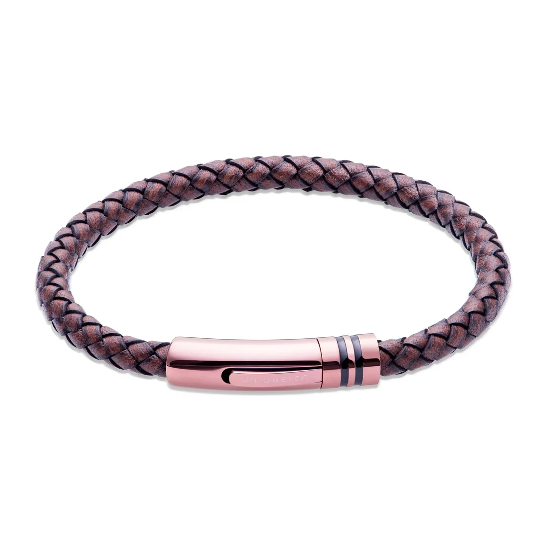 Dark brown gents leather bracelet with a polished brown stainless steel clasp.