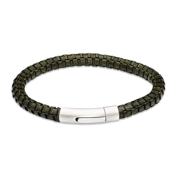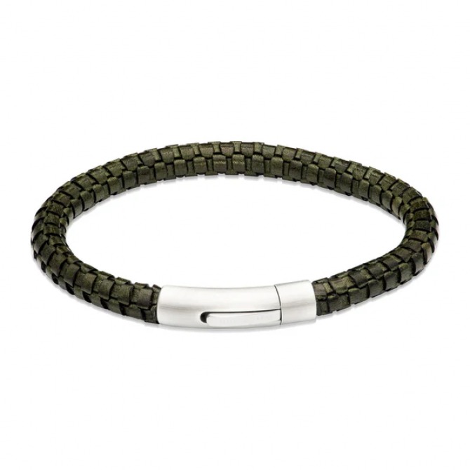 Dark green leather gents bracelet with a polished stainless steel clasp.