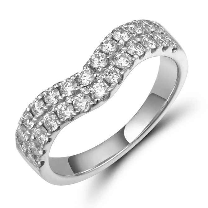 Diamond (.76) and platinum V-shaped double row ladies ring.