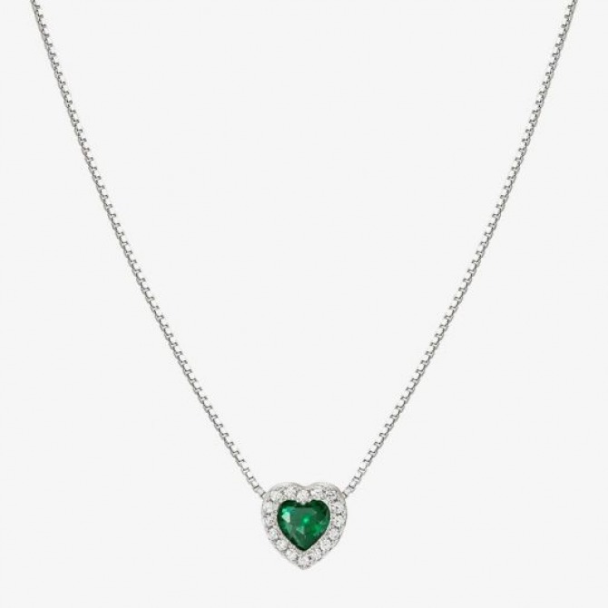Sterling silver necklace with white rhodium treated finish and Green Cubic Zirconia Heart symbol surrounded by white Cubic Zirconia. Length: 43 cm, shortens to 38 cm. Pendant size: 0.65 x 0.66 cm. The coloured Cubic Zirconia used in this item may be subject to very slight variations in colour. Made in PRC. Be inspired by the intense gemstones of the All My Love Collection.