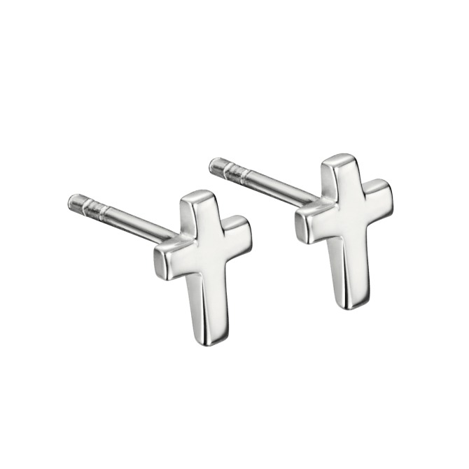 Eden our classic Cross stud earrings in sterling silver. These sterling silver cross earrings are a timeless classic making them a cherished piece for jewellery lovers of all ages. The butterfly backs ensure that the earrings remain securely in place, offering comfort for prolonged wear, a classic first pair of kids earrings.