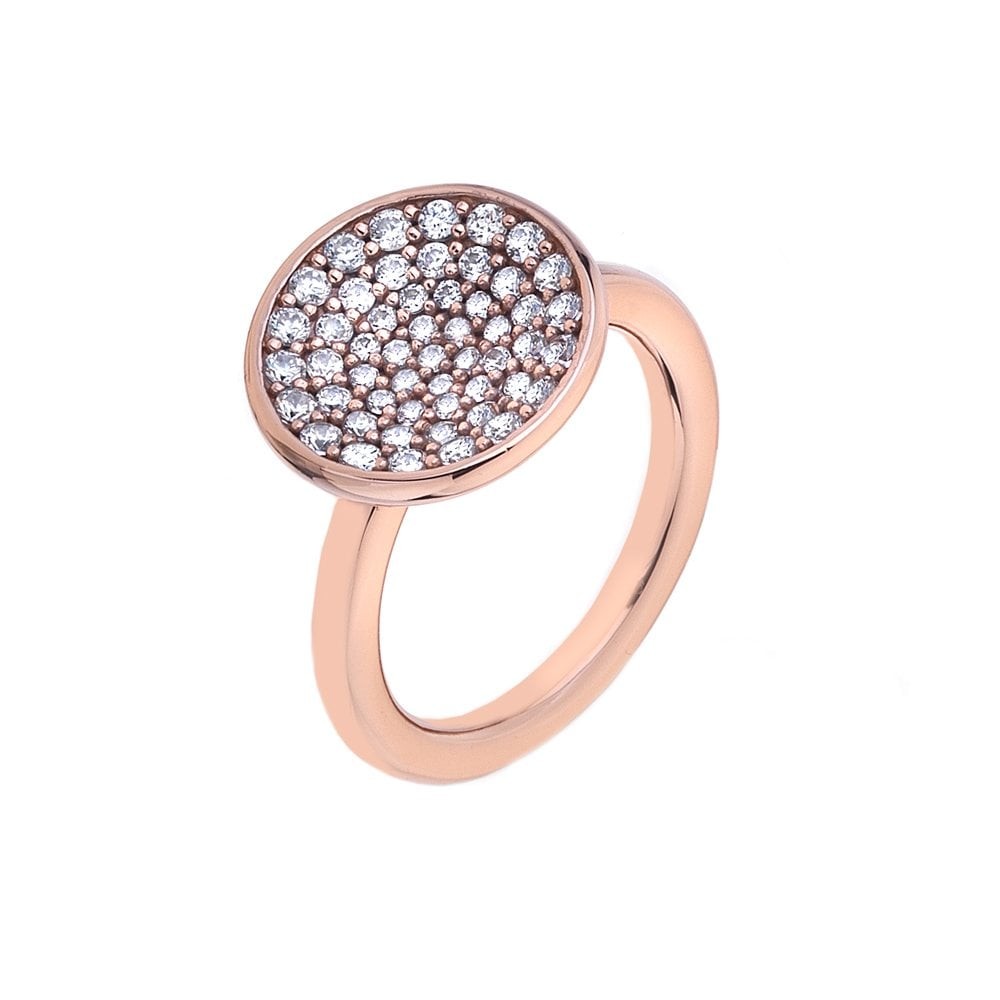 This sterling silver Hot Diamonds Emozioni ring incorporates rose gold plating to bring a modern edge, featuring a stunning cluster of Cubic Zirconia to add sparkle.