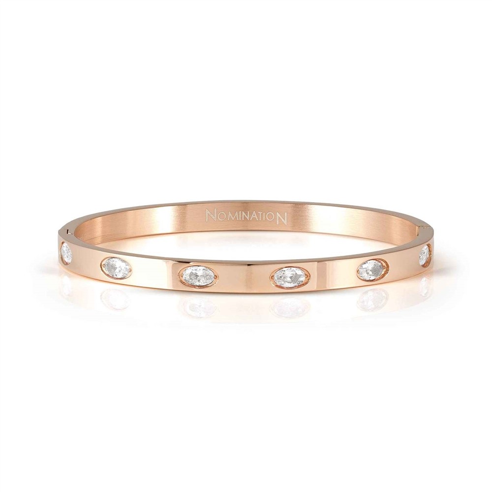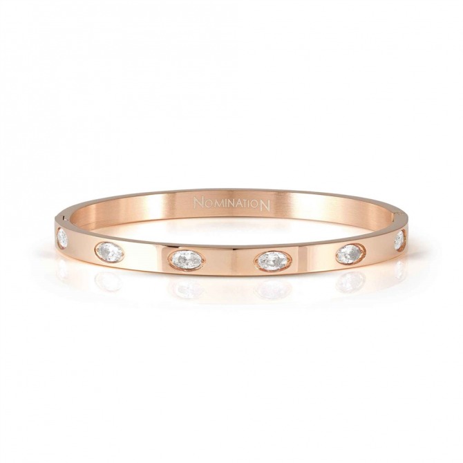 Rigid stainless steel bangle bracelets with pink PVD colour coated finish, available with White or coloured Cubic Zirconia. Each bangle is hinged on one side and has a hidden fastening that snaps securely closed on the other. For your best friend, someone special who has always had your back and stayed by your side, your partner-in-crime, here is the perfect gift idea that will touch her heart. This bracelet is versatile and was designed to be worn single, as a standalone for a discreetly elegant look or in a stack with other bangles from the Pretty Bangles New Edition. The look will always be personal and fashionable. This bracelet is a lovely way to represent the lasting bond that keeps you united.