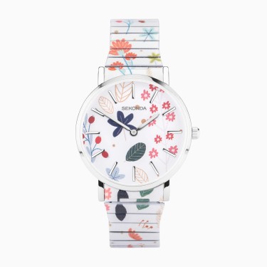 This dual time watch has a round, ion-plated silver alloy case with a light blue sunray dial, subdials and a date display. The watch is fastened with a black perforated leather strap and is water resistant up to 50 metres.