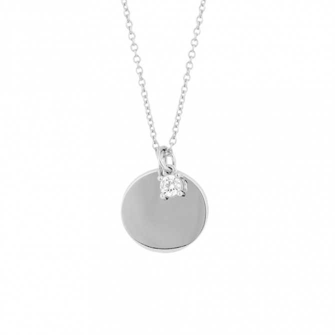 An update on a timeless profile, this necklace is sure to be a staple in any jewellery collection! Crafted in triple plated sterling silver and featuring a sparkling Diamonfire zirconia charm, this necklace will add subtle sparkle to any outfit. Why not create a perfect personalised gift with our engraving service! The possibilities are endless, consider names, initials, dates, co-ordinates, quotes, symbols, handwriting, drawings and more! Both the front and back of this pendant can be engraved. Be sure to pair with the matching hoop earrings to complete the look or why not combine with our stacking earring kit to personalise your look further!
