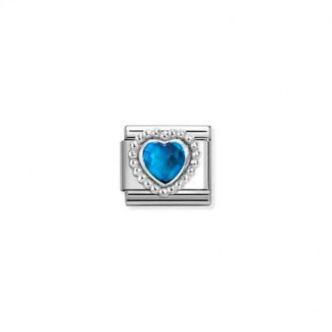Original Nomination Classic Link in stainless steel with raised Faceted Blue Heart with Beaded setting in sterling silver. The fancy beaded setting of the heart add a touch of delicate style to this Link that is both classic and contemporary at the same time. Choose the luminous sapphire coloured light of this heart to decorate your bracelet.