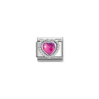 Original Nomination Classic Link for Composable bracelet in stainless steel with sterling silver and Faceted Fuchsia stone heart with beaded setting. Made in Italy. This is the perfect gift for any occasion for a jewellery lover.