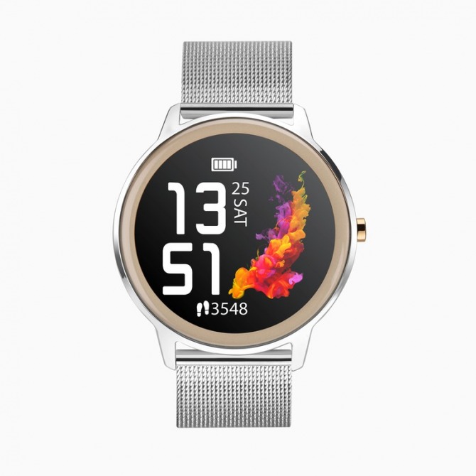 This Sekonda Flex smart watch features a silver alloy case with a 1.1 inch, round, interactive dial. Features include step/distance/calorie tracker, sleep monitor, blood oxygen measurement, notifications & more. The watch is fastened with a 20mm stainless steel mesh strap and has a water resistance rating of IP67. This means that the watch is splashproof and showerproof but not recommended for swimming or watersports. Smart Watch. Smart choice.