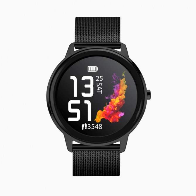 This Sekonda Flex smart watch has a black alloy case with a 1.1 inch, round, interactive dial. Has a step/distance/calorie tracker, sleep monitor, blood oxygen measurement, notifications & more. The watch is fastened with a 20mm black mesh strap and has a water resistance of IP67. This means that the watch is splashproof and showerproof but not recommended for swimming or watersports. Smart Watch. Smart choice.
