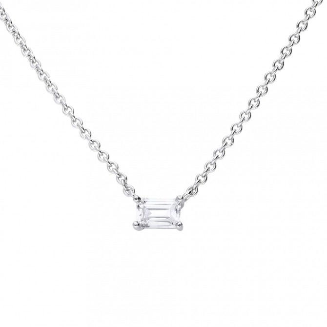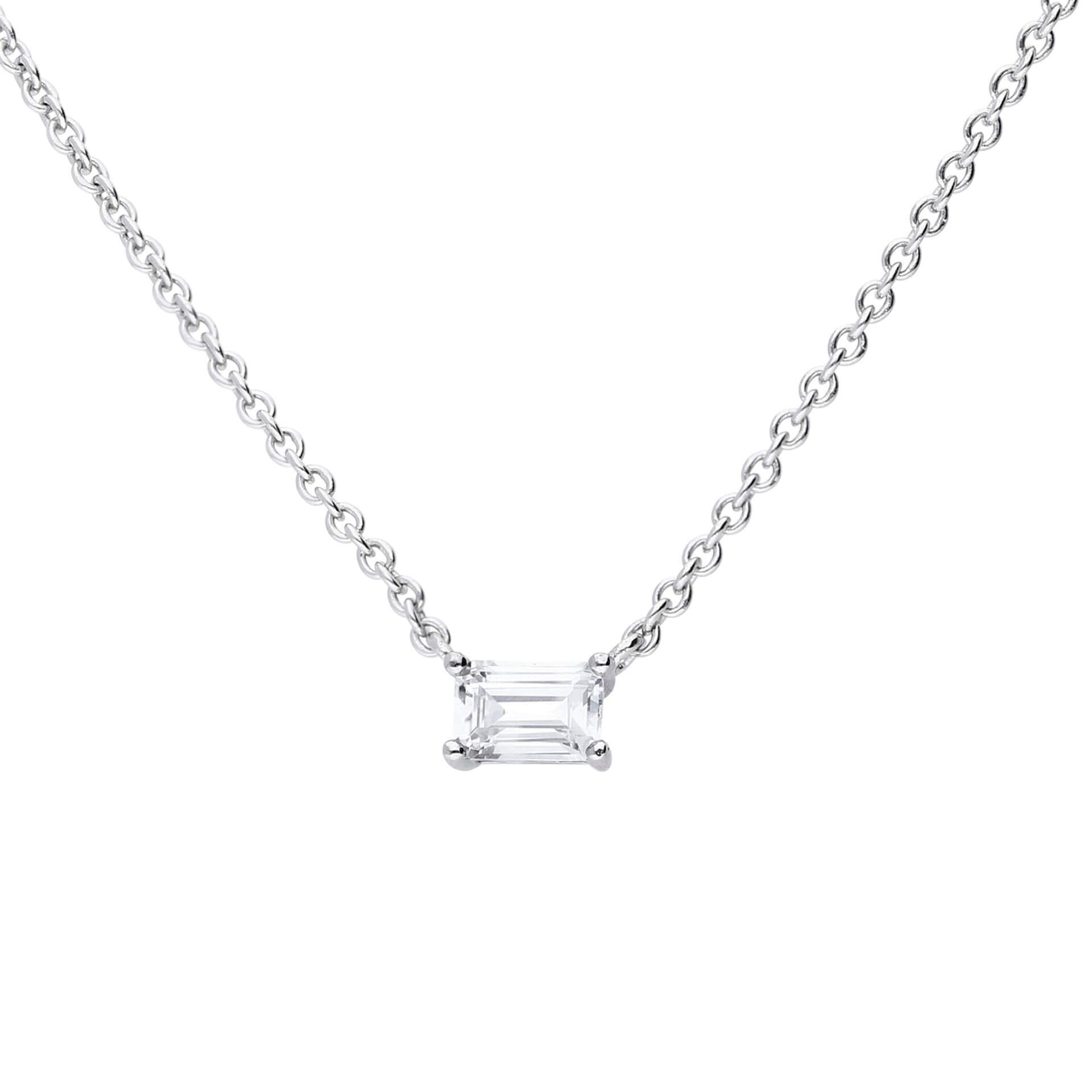 To add a simple sparkle to your look this necklace is perfect! Crafted in triple plated sterling silver and featuring a baguette cut Diamonfire zirconia stone, this necklace will make a great gift for a loved one. Make sure to wear with a pair out our Diamonfire stud earrings to compliment your style!