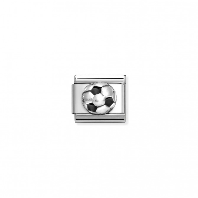 Original Nomination Classic Link in stainless steel and sterling silver with Football symbol with Black Enamel. Made in Italy. Whether you call it football or soccer, if you love this sport than this is the Link for you!