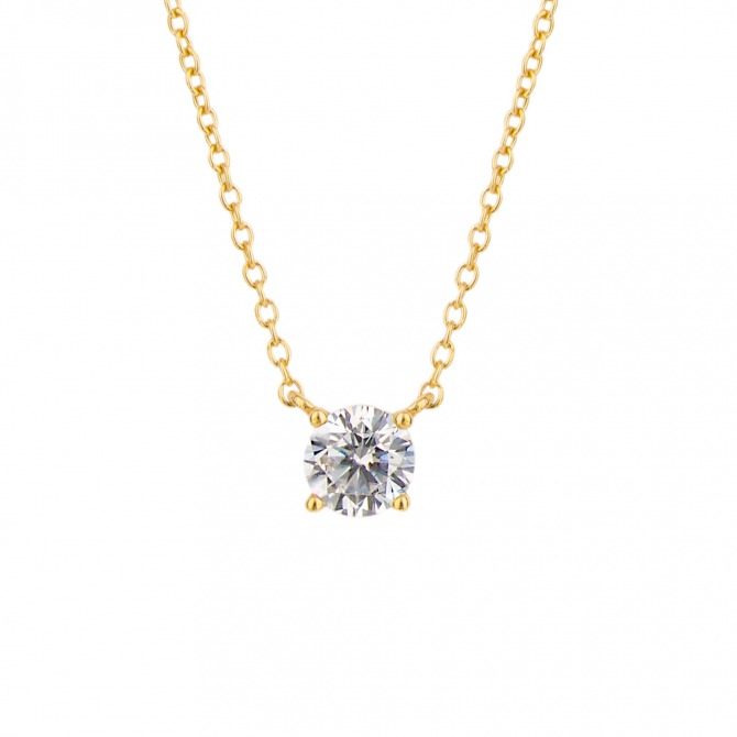 A timeless classic profile, this four claw solitaire necklace is sure to be a staple in any jewellery collection! Crafted in 24ct yellow gold plated sterling silver and featuring a sparkling Diamonfire zirconia stone, this necklace is perfect for adding a subtle sparkle to any outfit. Be sure to pair with the matching stud earrings or our stacking earring kit to complete the look!