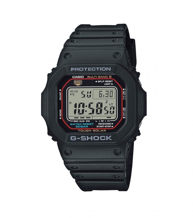 This model from the square-faced 5600 series features Multi-Band 6 technology and carries on the design legacy of the DW-5000C, which was born in 1983. It inherits the classic case shape and dial design of the original DW-5000, giving it a timeless look. As G-SHOCK continues to evolve with its toughness concept, this model proudly embodies the DNA of the first model while stepping up its game even further.