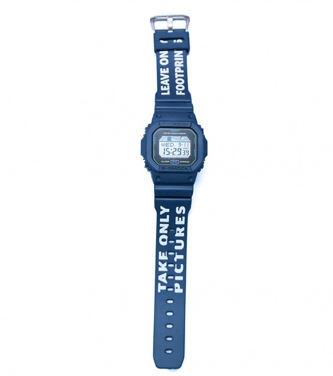 The collaboration utilizes the thin, compact, and highly wearable DW-5600 as its base model, enhanced with practical features like a tide graph, 20-bar water resistance, super illuminator, and moon data. The metal dial & mirror-finished tide graph display add a sleek, stylish touch to this functional, sporty, and summer-ready watch.