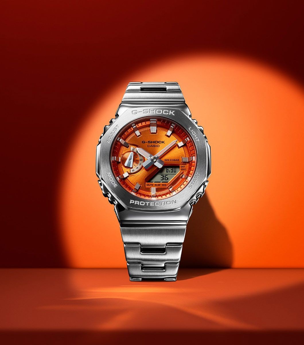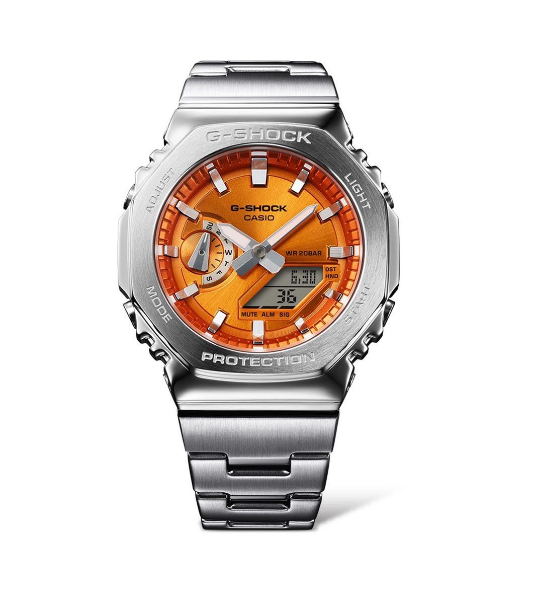Each GM-2110 is meticulously engineered, featuring an octagonal bezel that is forged, cut, and polished to perfection, with individual surfaces finished in distinct hairline and mirror techniques. Paired with a glass fiber-reinforced fine resin case, the result is a slim profile of just 11.8 mm—making it the thinnest in the G-SHOCK analogue-digital range.