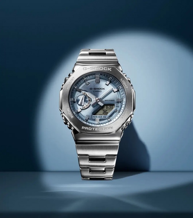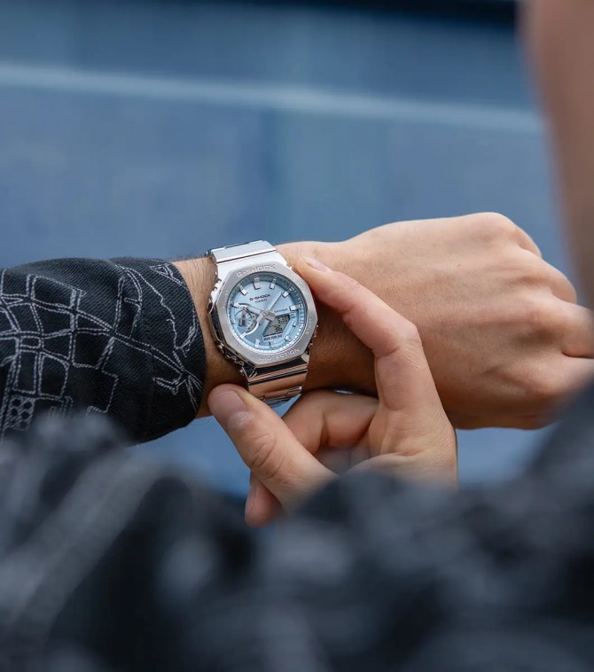 Each GM-2110 is meticulously engineered, featuring an octagonal bezel that is forged, cut, and polished to perfection, with individual surfaces finished in distinct hairline and mirror techniques. Paired with a glass fibre-reinforced fine resin case, the result is a slim profile of just 11.8 mm—making it the thinnest in the G-SHOCK analogue-digital range.
