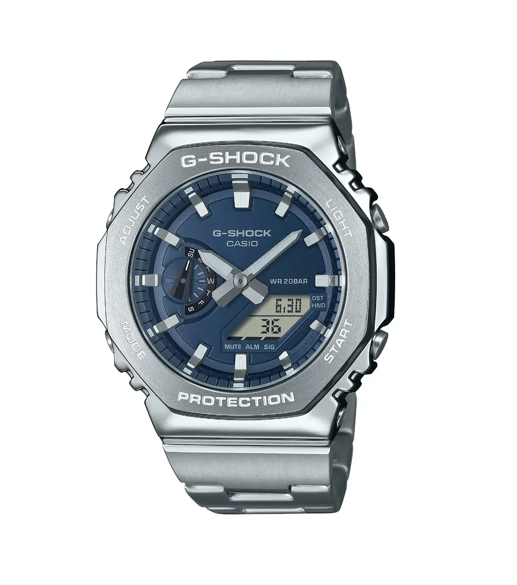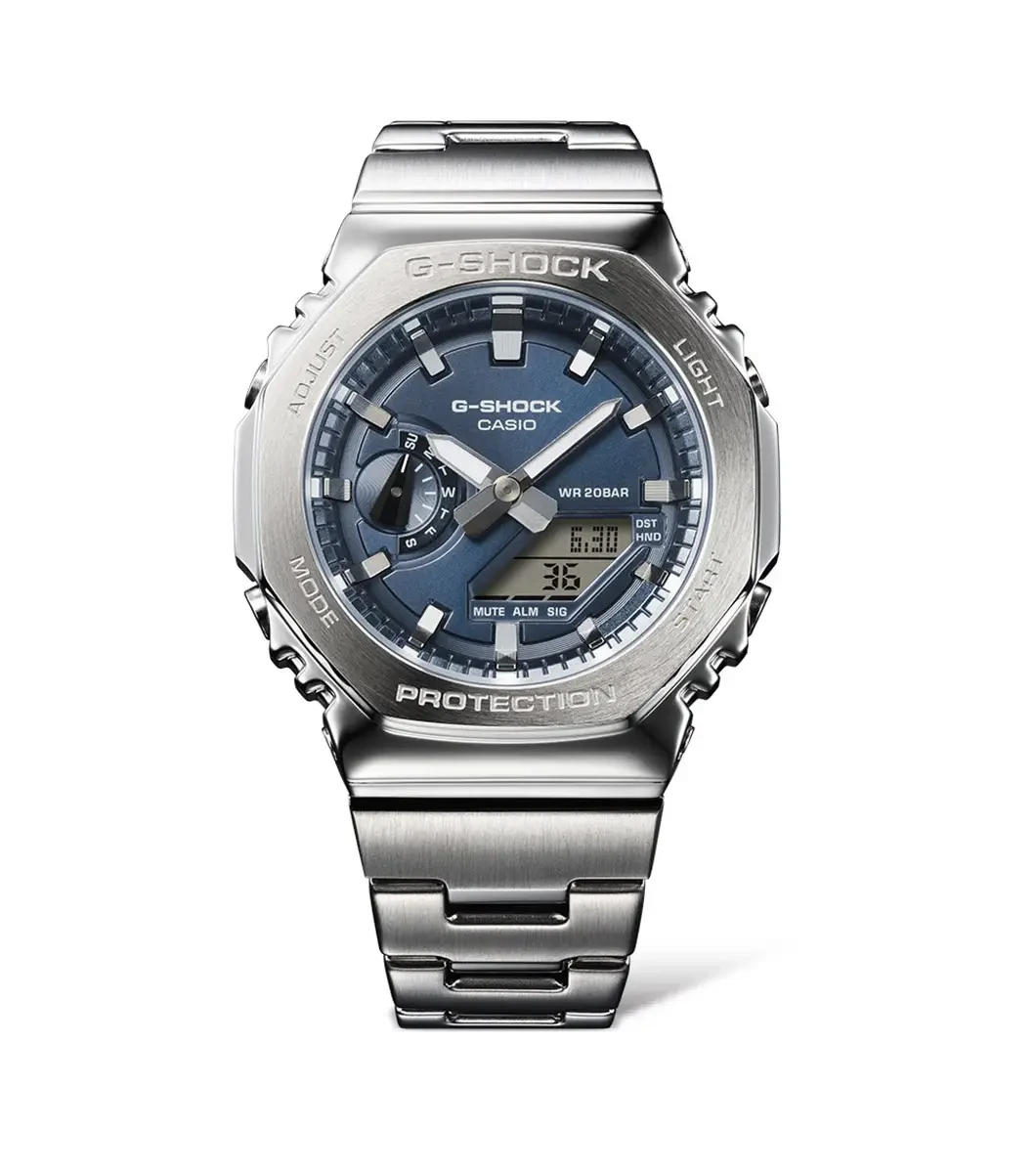 Presenting the latest addition to the renowned 2100 line, now with an octagonal stainless-steel bezel, metal band & a vibrant, navy blue metallic dial. Pushing the boundaries of style and resilience in the Steel Edition collection.