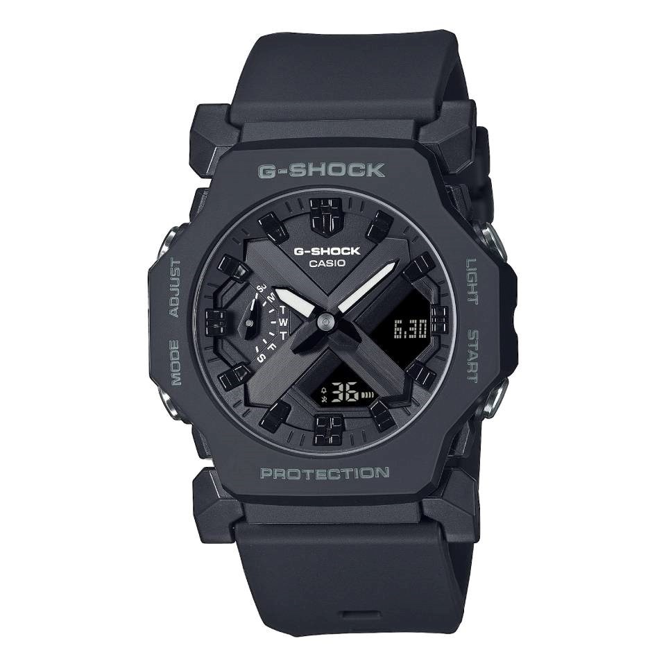 Introducing the all-new GA-2300 series, now available in a more compact and sleek design. It boasts a digital-analogue display, a shock-resistant structure, double LED light, world time, and a hand shift feature - hands move out of the way to provide an unobstructed view of digital display contents. A minimalist design in a futuristic form, this timepiece is bound to be noticed. Choose the GA-2300 in classic black, white, grey or go with the GA-2300-4A in vibrant pink with a matching LCD.
