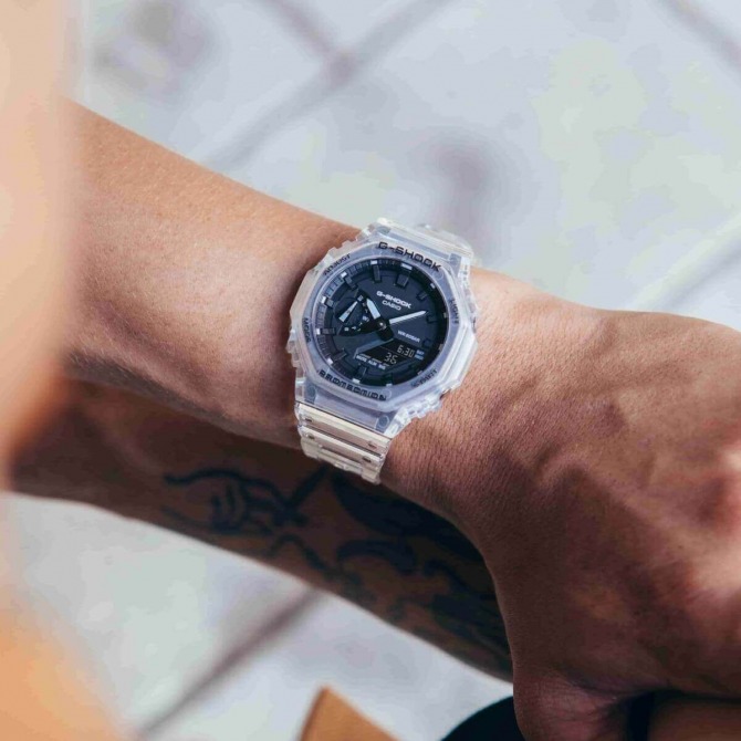 The GA-2100 lineup comes with a carbon core guard structure and an octagonal bezel in a clear type coloring based on white.