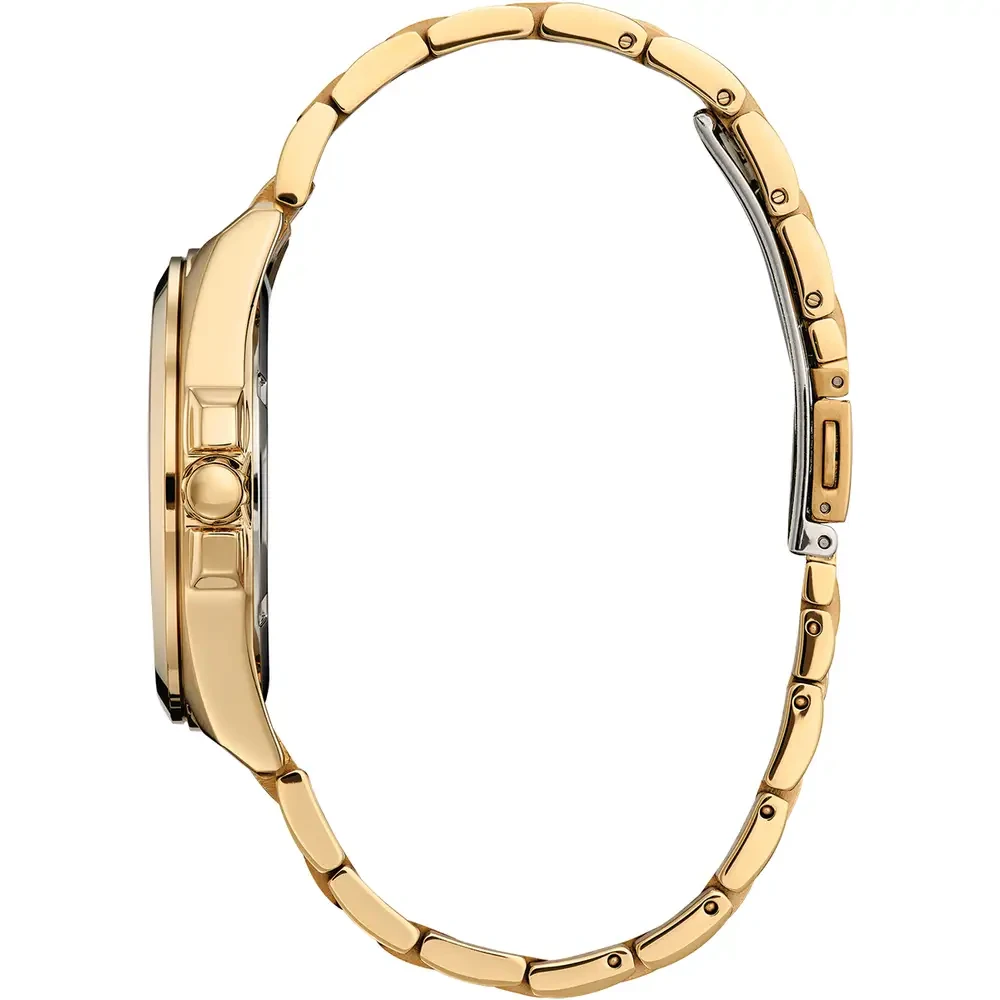 Styled in gold-tone stainless steel with a sleek blue dial, this timepiece effortlessly completes any look. This 3-hand timepiece features gold-tone luminous hands & markers, sapphire crystal and date display at the 3 o’clock position. Sustainably powered by any light with our Eco-Drive technology.