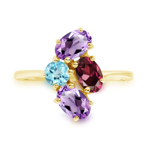 Gold with Amethyst Blue Topaz & Garnet Ring