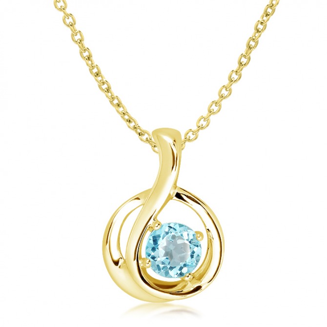 Sterling silver with gold plate pendant set with a blue topaz stone, suspended from an 18" sterling silver with gold plate chain.