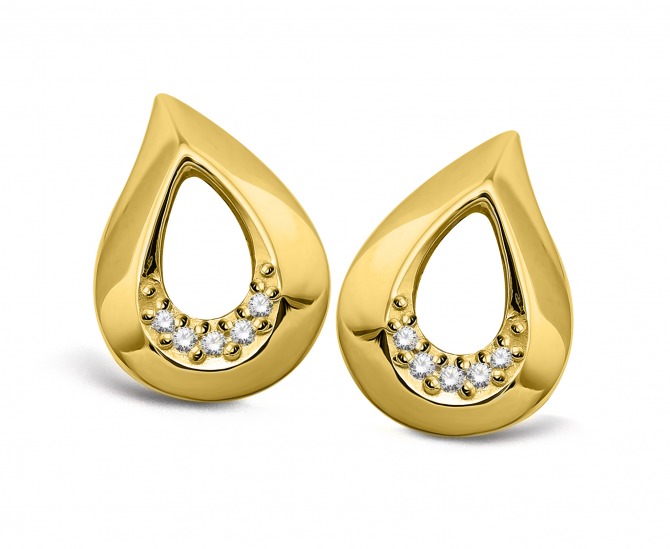Sterling silver with gold plate open teardrop stud earrings set with cubic zirconia.