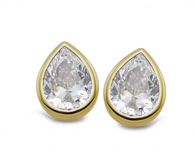Sterling silver with gold plate stud earrings set with pear shaped cubic zirconia.