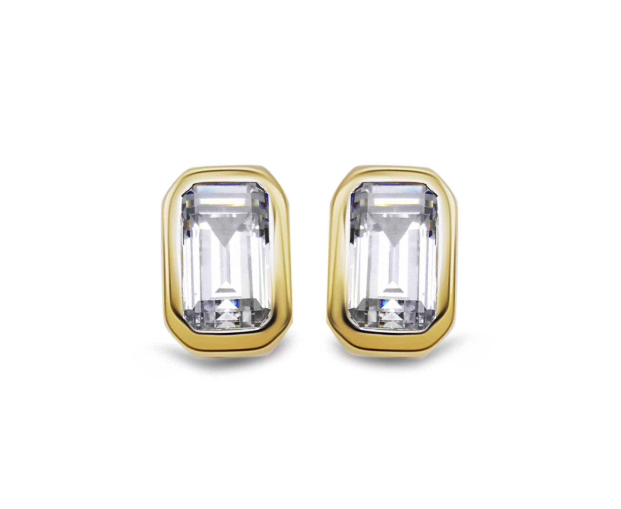 Gold & Emerald Cut CZ Stud Earrings