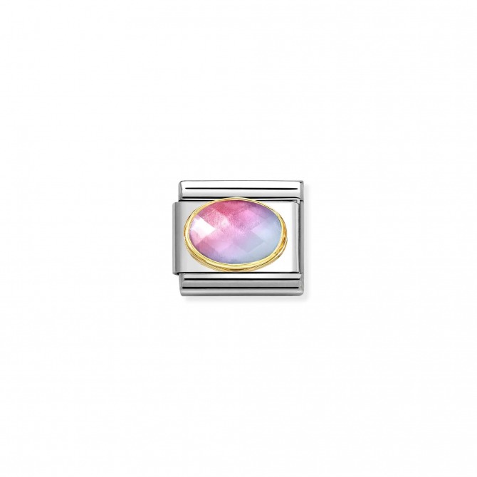 Original Nomination Classic Link for Composable bracelet in stainless steel with yellow bonded gold and Two-Tone Pink-Light Blue faceted stone. Made in Italy. Choose this Link to make Mum’s Composable bracelet even more special.