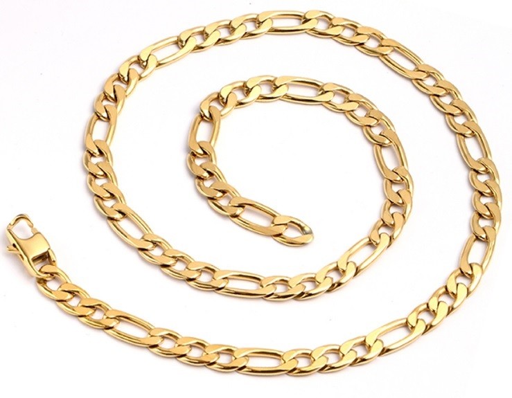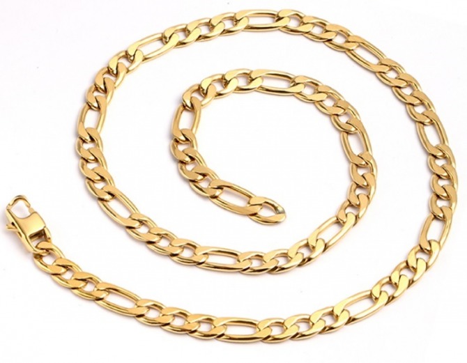 Stainless steel with polished gold plating figaro chain, 55cm in length.