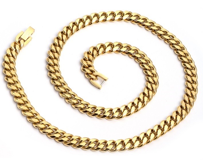 Stainless steel with matt gold plating heavy curb chain, 55cm in length.