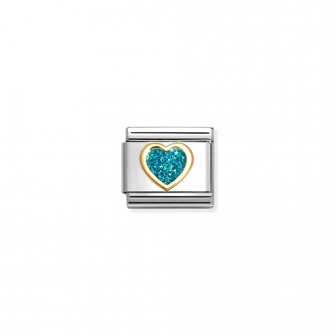 Original Nomination Classic Link in stainless steel and 18K yellow gold with Heart symbol with Turquoise Glitter. Made in Italy. This is the perfect Link to gift #oneformeoneforyou with your bestie!