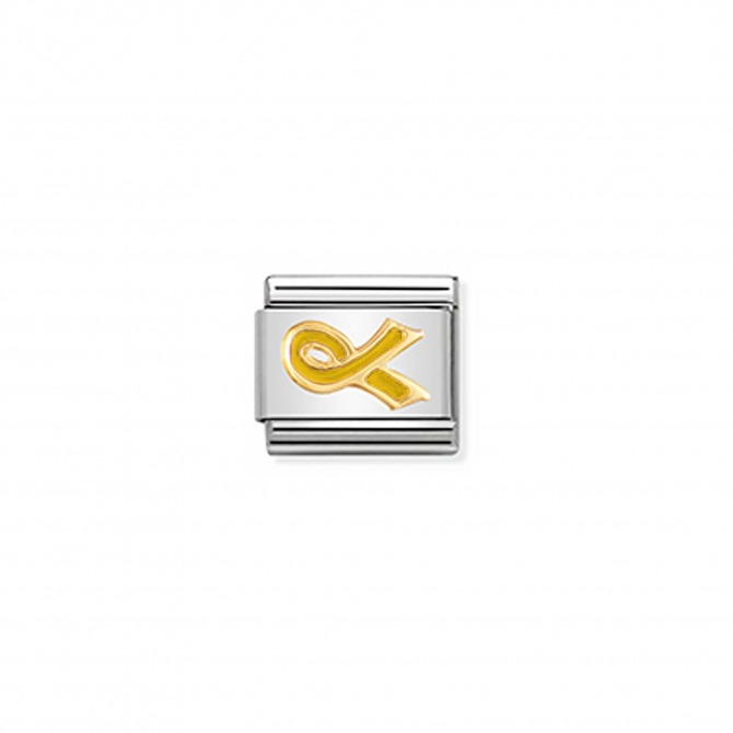 Original Composable Link for Nomination's Composable Classic Bracelet with Yellow Ribbon symbol in 18k gold and yellow enamel on stainless steel. Made in Italy.