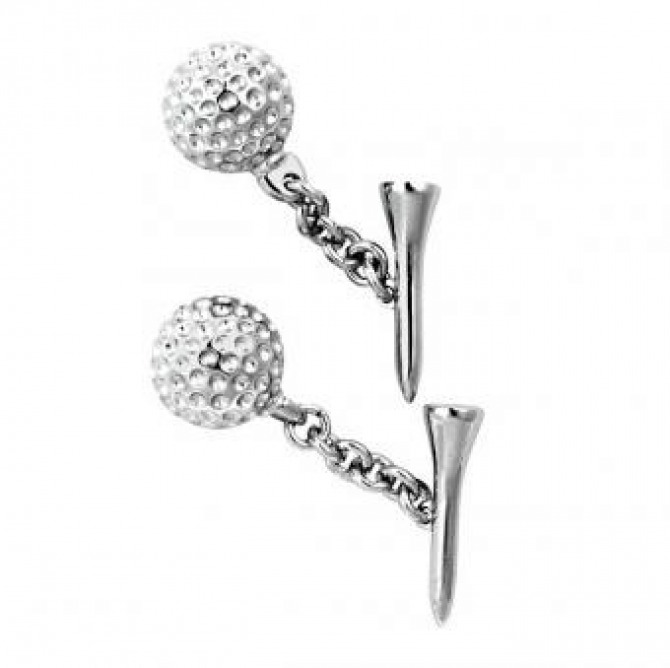 Golf Ball and Tee Cufflinks in Sterling Silver.