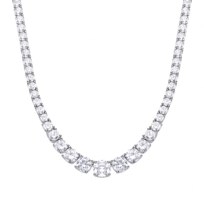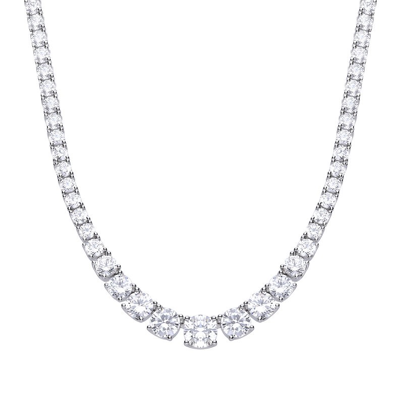This beautiful and elegant graduated zirconia tennis necklace is perfect for adding that extra sparkle to your outfit. Featuring Diamonfire cubic zirconia stones which are cut specially with 57 facets just like a real brilliant cut diamond. The product also is made from sterling silver with a triple plated finish of palladium, platinum and rhodium for an almost life-long tarnish protection.