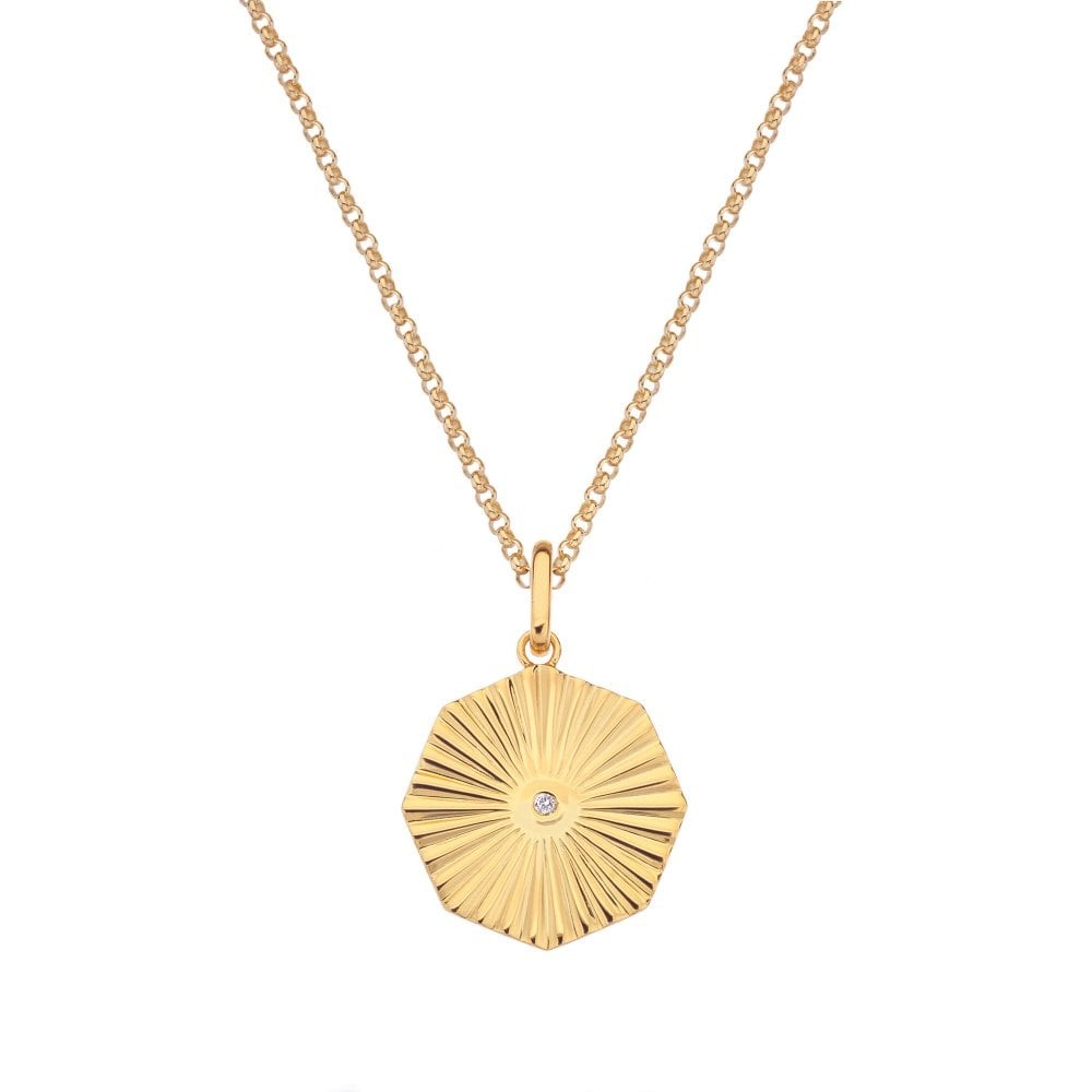 The 'Hope' collection is about positivity - harder lines and angles and a sunburst theme to emulate hope and optimism. This pendant is crafted from 925 sterling silver, plated with 18ct gold and hand-set with a real diamond. It's confident, fresh and stunning - love it! Jac x The pendant measures 15mm x 24mm including the bail.
