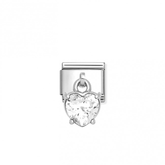 Original Nomination Classic Link in stainless steel and sterling silver with Heart Cut Cubic Zirconia pendant. Made in Italy. No Romantic will be able to resist this Link.