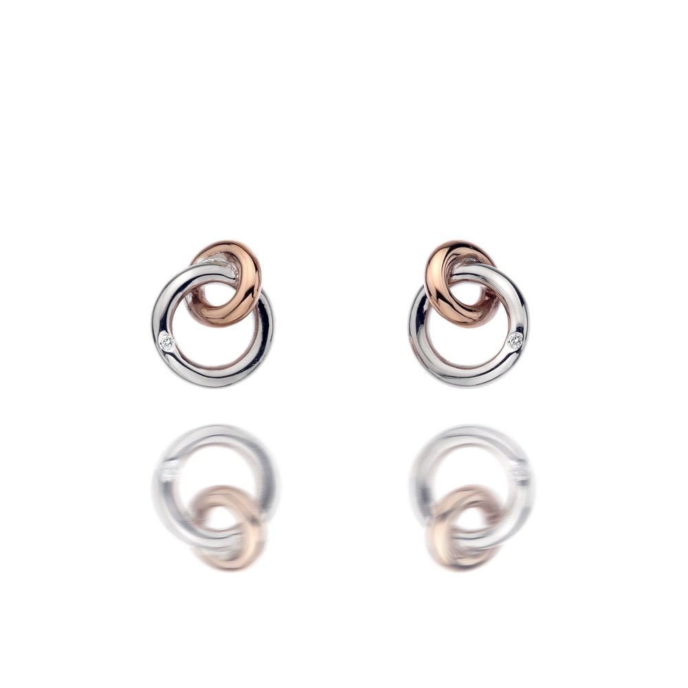 From the Eternal Collection: Connected by love...forever. These stunning earrings feature two interlocking rings crafted from 925 sterling silver one of which is rose gold plated. Match these with the Eternity necklace and ring to complete the set. Fantastic option for a Wedding Anniversary gift.