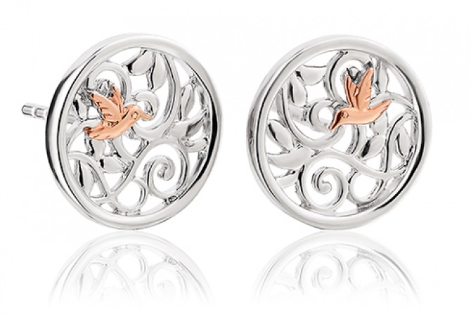 Adapt to any outfit or occasion with this stunning set of Hummingbird earrings. A delightful 9ct rose gold hummingbird rests on beautiful filigree crafted from sterling silver.