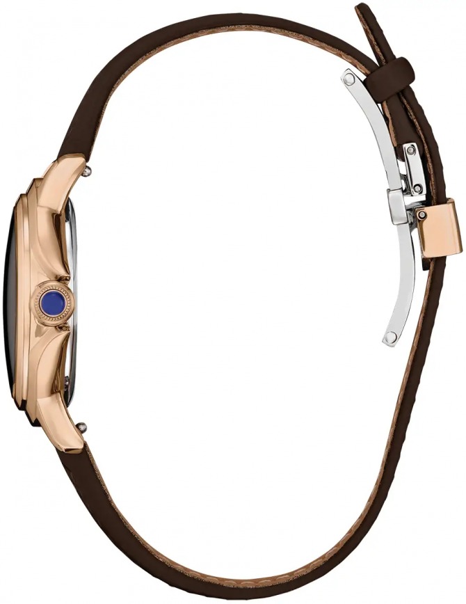 The Ceci from our Citizen L collection offers an elegant and glamorous silhouette. Featuring a pink gold-tone stainless steel case, its distinct shape is punctuated by a synthetic sapphire-set cabochon crown. On the dial, the rich brown display features pink gold-tone accents, with the slim lines of the Roman numeral indices matching those of the hands. The look is completed with a comfortable brown leather strap. With this watch, you'll never need to worry about replacing the battery — this watch is sustainably powered by any light with our proprietary Eco-Drive technology. Whether you’re looking for a dress watch for special events or a beautiful timepiece to wear every day, the Ceci will look great on every wrist and at every occasion.