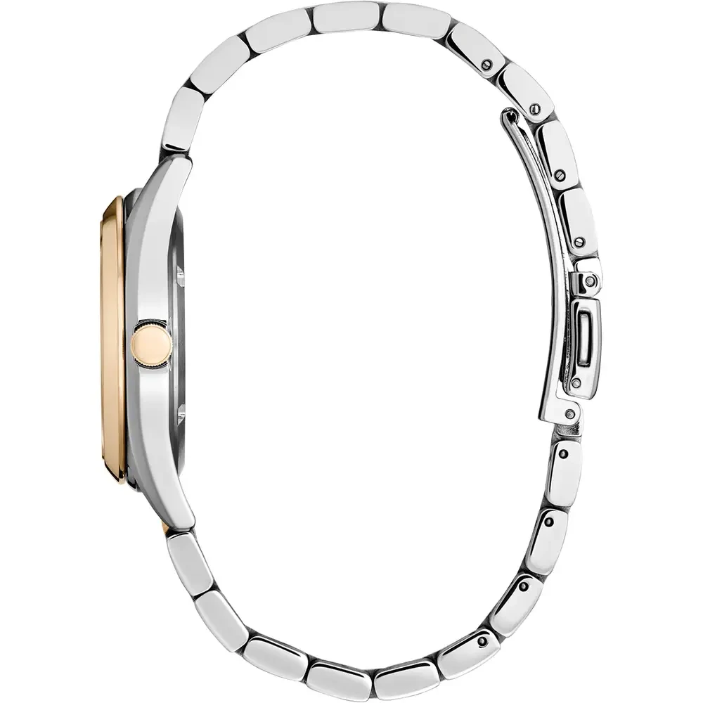 Elevate your daily looks with this timepiece from Citizen. Fusing wear ability with feminine elegance, this timepiece is the ultimate day-to-evening look. The two-tone stainless steel case measures 33mm in diameter and is presented on a two-tone, 3-link stainless steel bracelet for a sleek, versatile wear on the wrist. The pink sunray dial features 8 diamond accents. With water resistance up to 100 metres and date display at the 3 o'clock position. Powered by Citizen’s proprietary Eco-Drive technology to provide light-powered vitality continuously and sustainably without ever needing a battery.