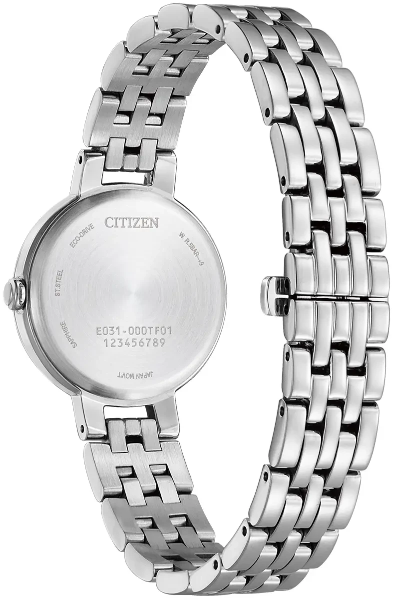 An elegant addition to our Citizen L collection, with a petite silver-tone stainless steel case and matching bracelet. A beautiful Mother-of-Pearl dial features stainless steel hands and markers and can be viewed under sapphire crystal glass. Sustainably powered by any light with our Eco-Drive technology, this timepiece will match your style, lifestyle and values. Water resistance to 50 metres.