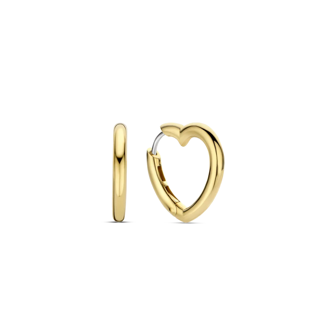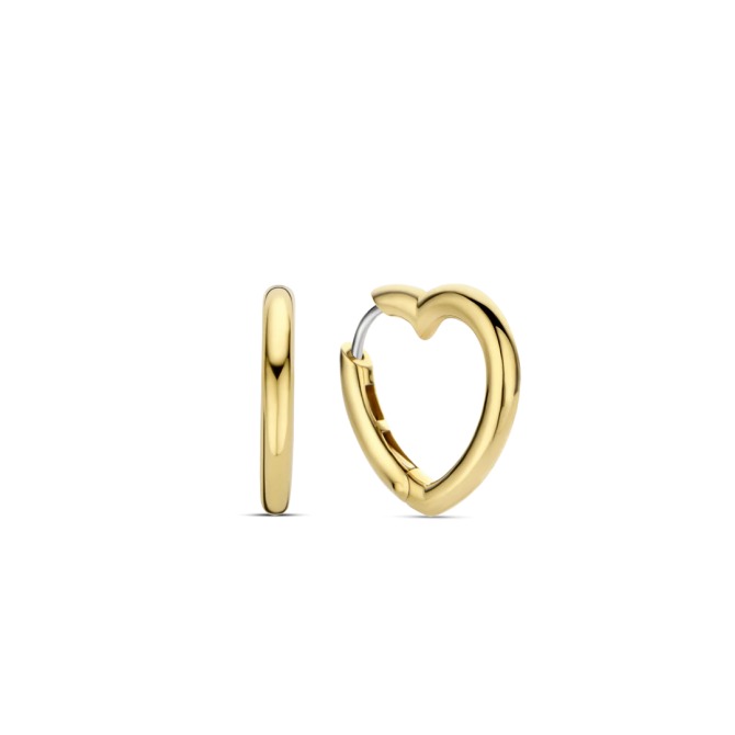 These TI SENTO gold-plated heart-shaped hoops 7917SY are entirely crafted from the highest quality 925 sterling silver and plated with yellow gold. The two seamless heart shapes are reminders to follow your heart each and every day. Combine these romantic pieces with your staple earrings to create your own Ear Party. These earrings are completely nickel-free and hypoallergenic.