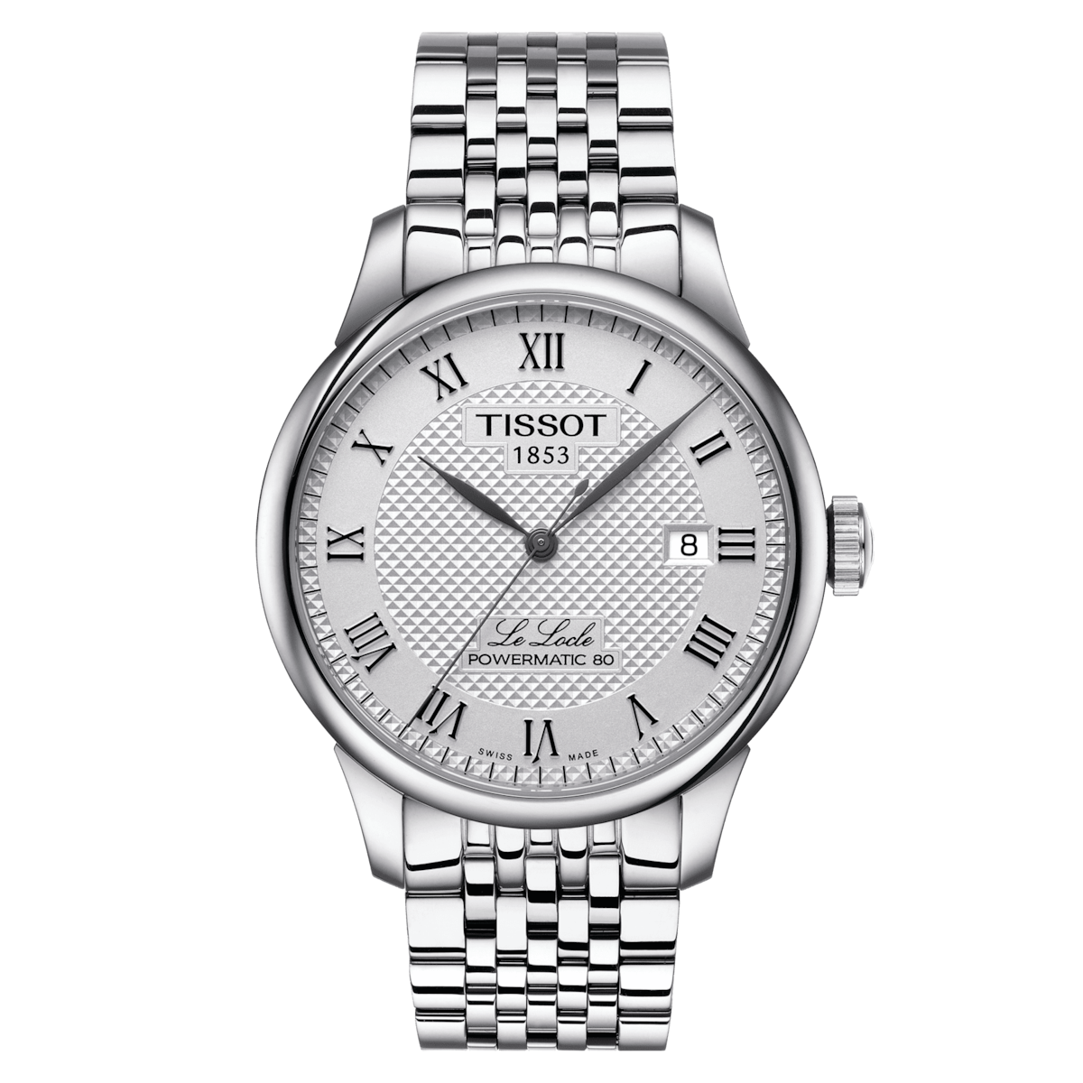 Named after Tissot's hometown and created to celebrate its 150th anniversary, the Le Locle line perfectly embodies the DNA and craftsmanship values of the brand. Powered by our Powermatic 80 movement with an 80-hour power reserve, the Le Locle Powermatic 80 features beautiful Roman numerals and the traditional Le Locle signature. Discover this model with its textured dial and stainless steel bracelet for a chic and elegant look.